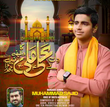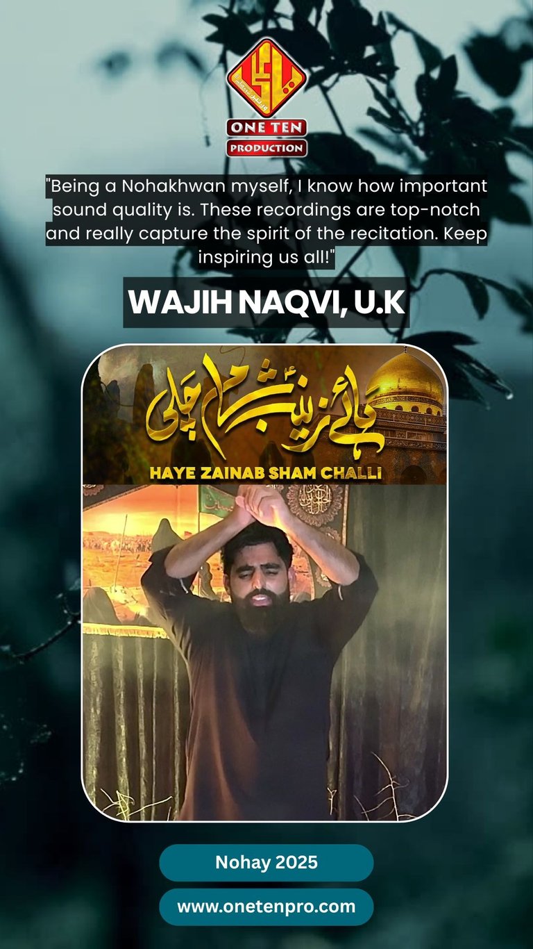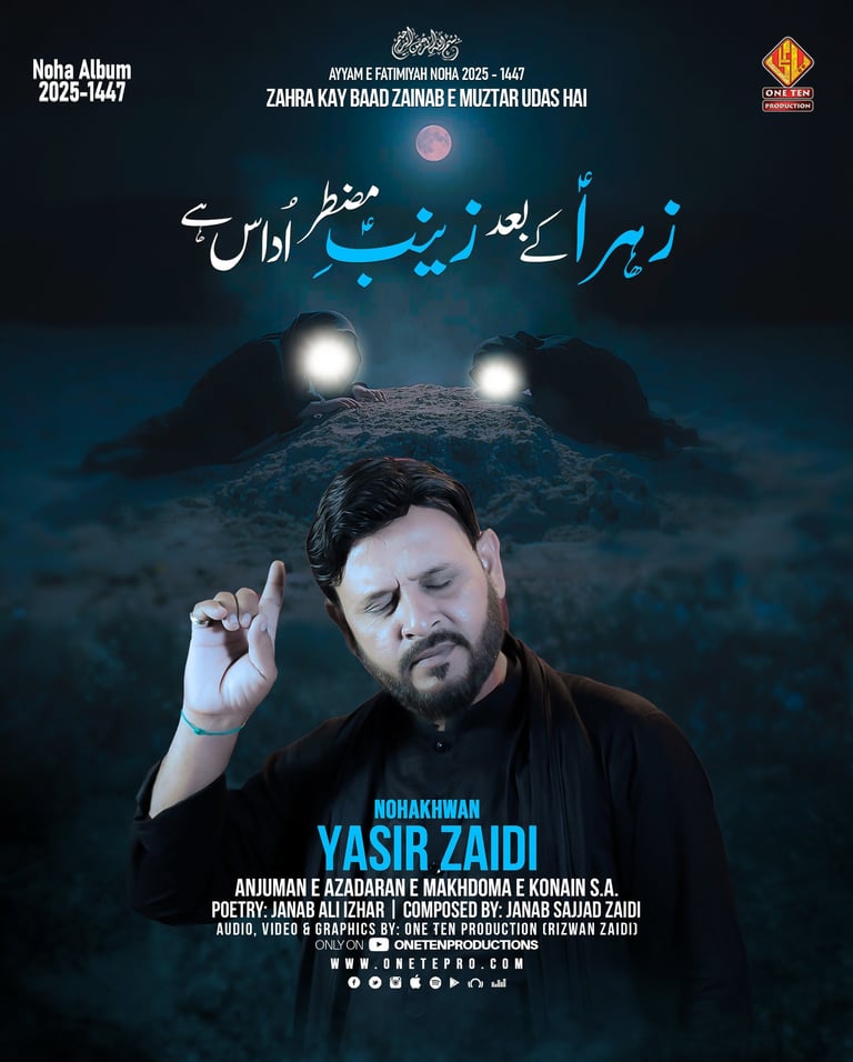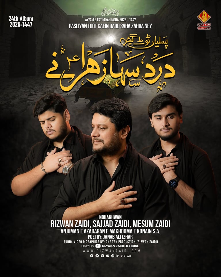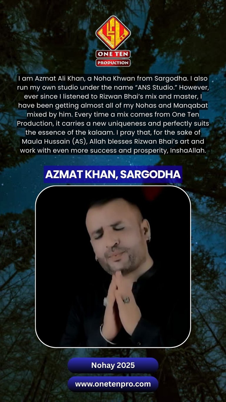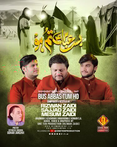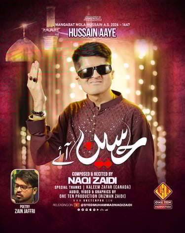 One Ten Production is a dynamic audio-video production company based in Karachi, Pakistan, operating state-of-the-art studios under the supervision of renowned nohakhwan Rizwan Zaidi — who has personally recorded over 600 nohay, naats, and manqabats, and supervised the recording of thousands of tracks by various acclaimed reciters from around the world. The company specializes in high-quality audio and video recordings, expert post-production editing, and creative graphic designing. The studios feature modern soundproof rooms, mixing consoles, editing suites, and a collaborative creative environment. The setting includes professional lighting, video cameras, audio equipment, and digital workstations. Showcase a team of passionate artists, sound engineers, video editors, and graphic designers working together in a polished, cinematic atmosphere — blending traditional culture with modern media excellence.