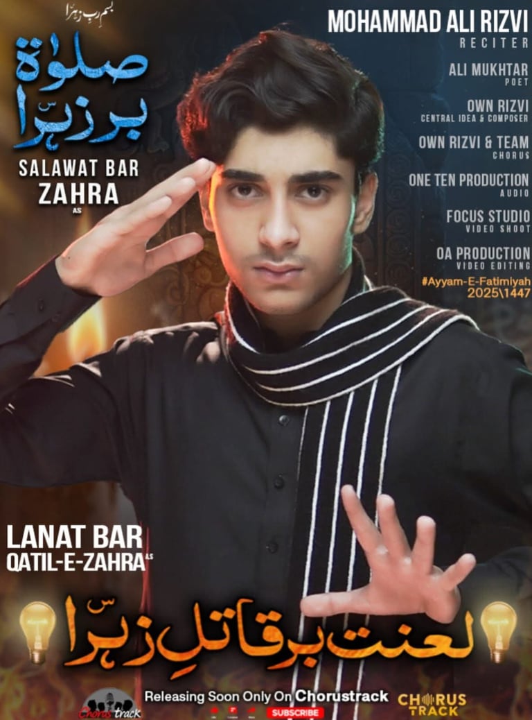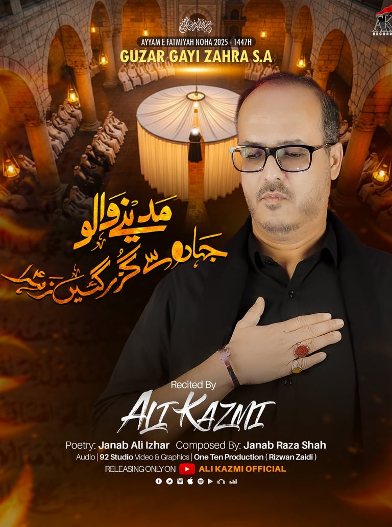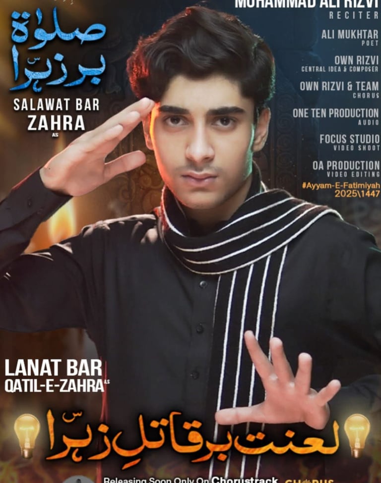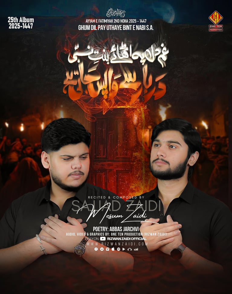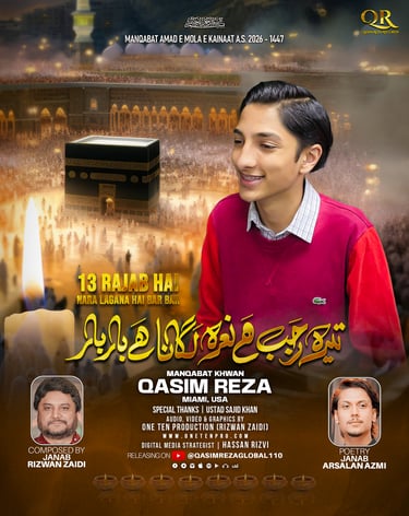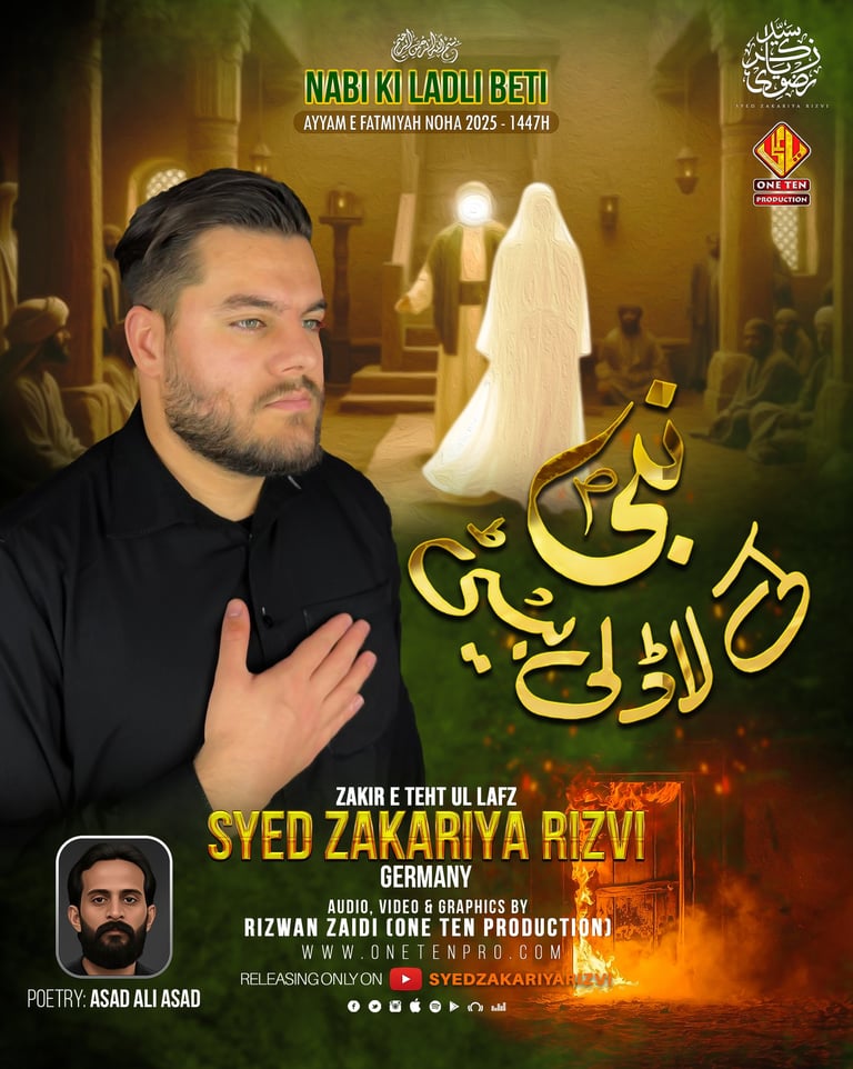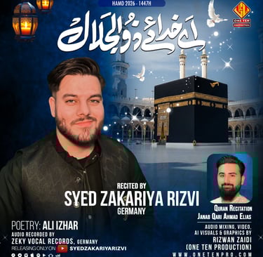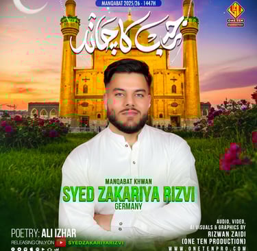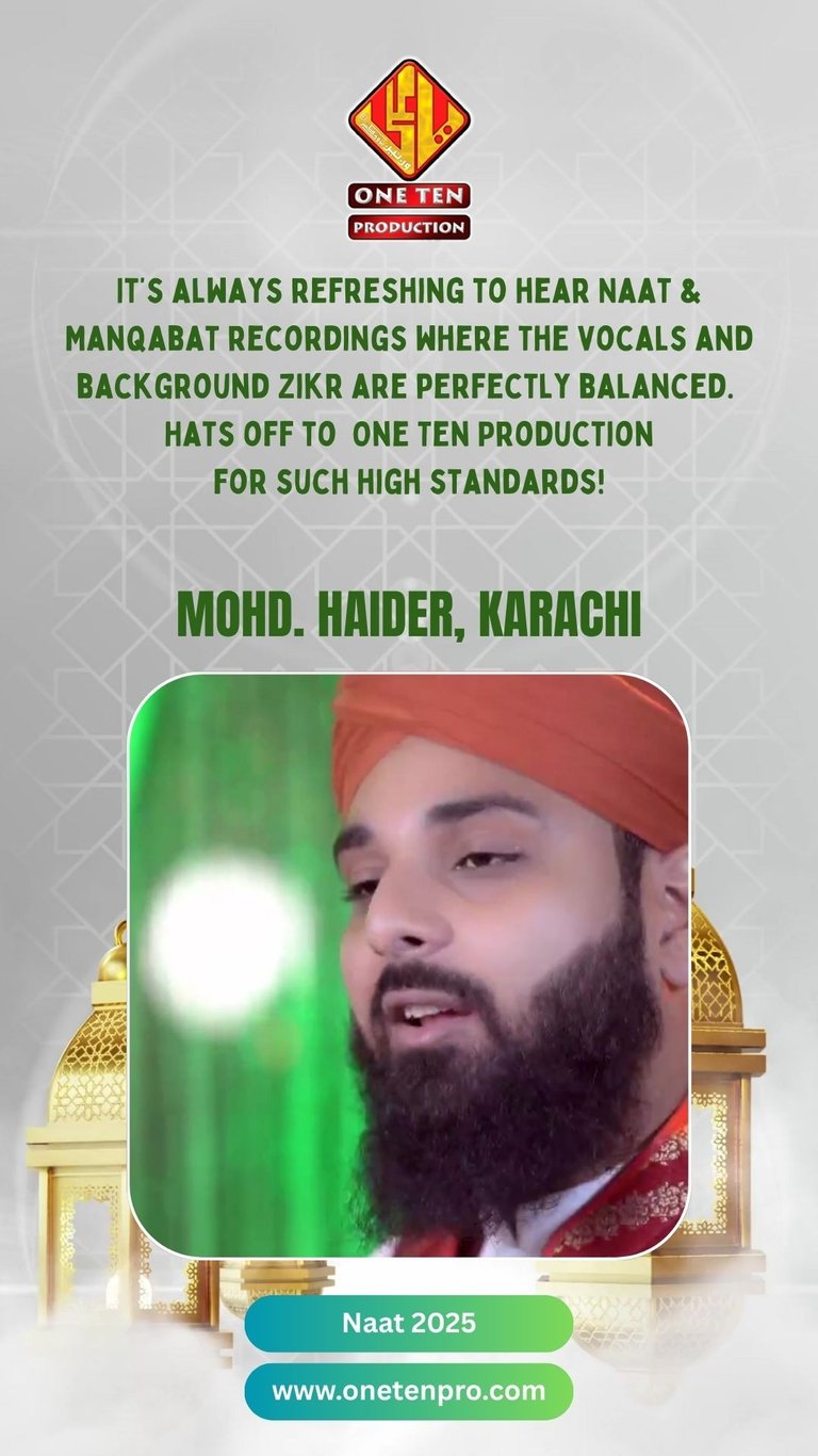 One Ten Production is a dynamic audio-video production company based in Karachi, Pakistan, operating state-of-the-art studios under the supervision of renowned nohakhwan Rizwan Zaidi — who has personally recorded over 600 nohay, naats, and manqabats, and supervised the recording of thousands of tracks by various acclaimed reciters from around the world. The company specializes in high-quality audio and video recordings, expert post-production editing, and creative graphic designing. The studios feature modern soundproof rooms, mixing consoles, editing suites, and a collaborative creative environment. The setting includes professional lighting, video cameras, audio equipment, and digital workstations. Showcase a team of passionate artists, sound engineers, video editors, and graphic designers working together in a polished, cinematic atmosphere — blending traditional culture with modern media excellence.
