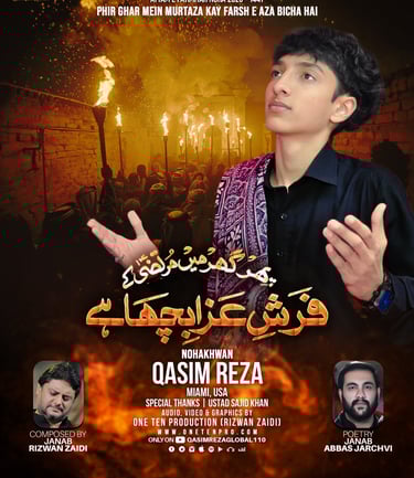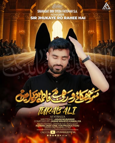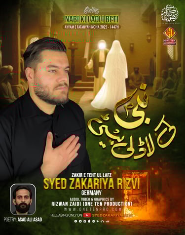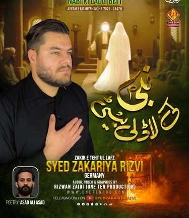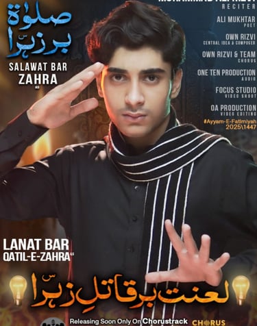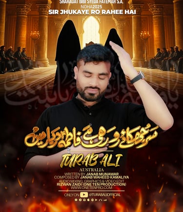 One Ten Production is a dynamic audio-video production company based in Karachi, Pakistan, operating state-of-the-art studios under the supervision of renowned nohakhwan Rizwan Zaidi — who has personally recorded over 600 nohay, naats, and manqabats, and supervised the recording of thousands of tracks by various acclaimed reciters from around the world. The company specializes in high-quality audio and video recordings, expert post-production editing, and creative graphic designing. The studios feature modern soundproof rooms, mixing consoles, editing suites, and a collaborative creative environment. The setting includes professional lighting, video cameras, audio equipment, and digital workstations. Showcase a team of passionate artists, sound engineers, video editors, and graphic designers working together in a polished, cinematic atmosphere — blending traditional culture with modern media excellence.